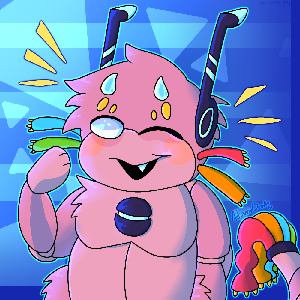 Thought it would be fun to draw this week's featured bot, one of which I like the design a lot! Love the simpler pinks with dashes of other colors, and I kept getting like dance-party-rave-vibes, so I went a with that theme a bit while drawing this, hopefully that's okay! I had a lot of fun drawing this, and I hope you like it. Congrats on having your character featured this week! :3