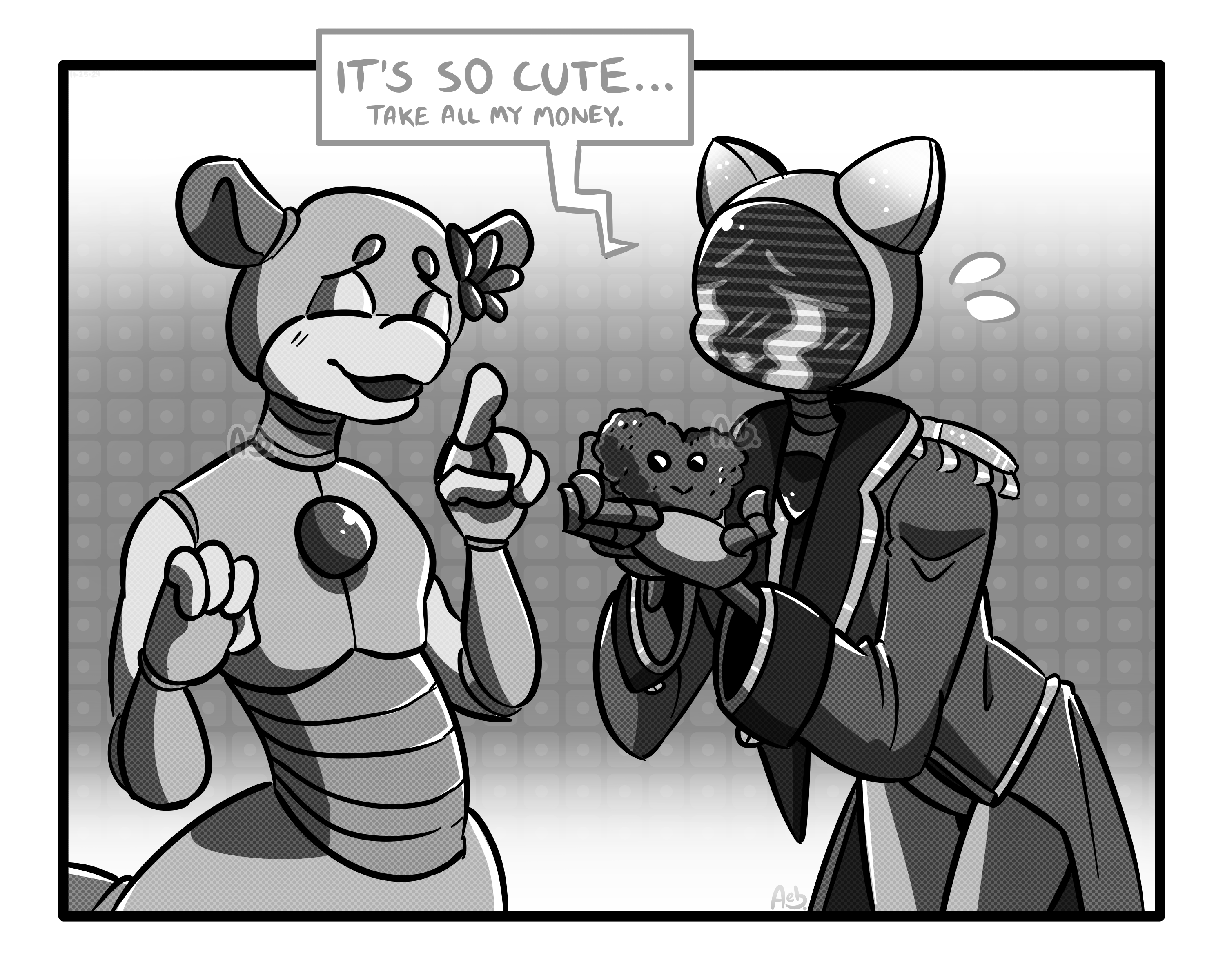 Entee visits Citrine's Amigurumi Stand and finds himself the cutest little crocheted heart plushie! He needs it, now!!!! I love amigurumi and crocheted things, and I wish I could crochet so bad but my motivation to pick up new hobbies as well as my self-esteem about anything I do other than drawing and casual writing is soooo bad. X'D Maybe one day... But at least I can dote on everyone else's creations right now! This is such a cute booth idea, I just had to do it! Enjoy. :>