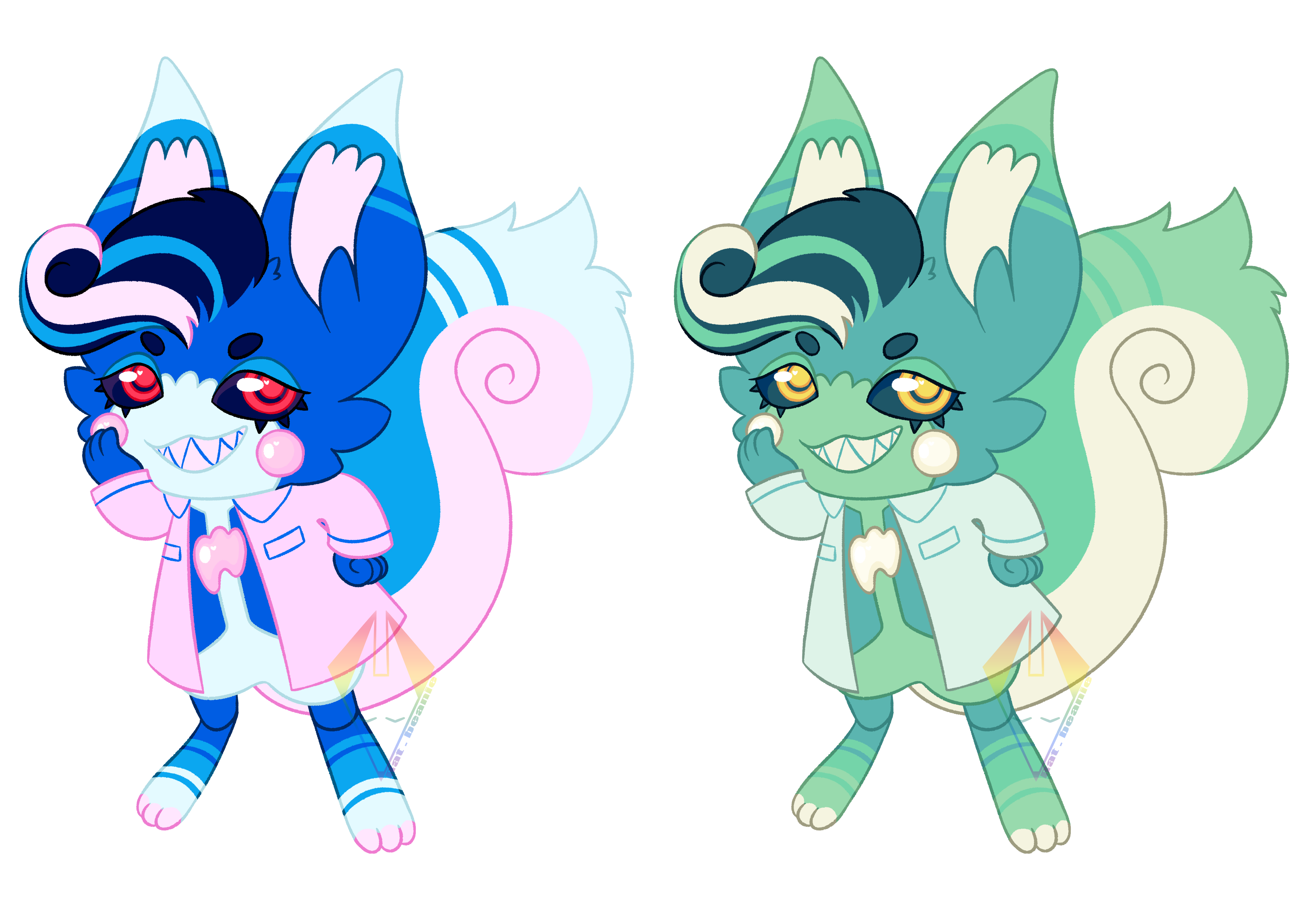 Was v fun to draw, the colour palettes are nice and bright. They also just look so mischevious... what are they up to with that devious smirk.